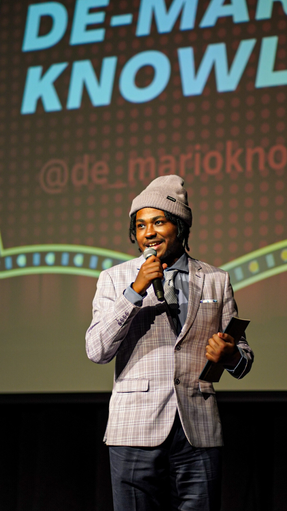 De-Mario Knowles is an eight-time award-winning keynote speaker, poet, and creative who is on a lifelong mission to make an IMPACT! His work has been recognized in several countries throughout the world, including Canada, America, Uganda, Pakistan, and India. He was rewarded the prestigious Lieutenant Governor’s Community Volunteer Award for his inspirational work, and he is currently pursuing an Honours Bachelor of Science at the University of Toronto in Neuroscience, Mental Health Studies, and French. Since 2021, the former Student Trustee has written over 15 poems about vulnerable topics such as body image, insecurities, and self-love. At his speeches, he can often be found with his trusty cameraman, TND Visuals.